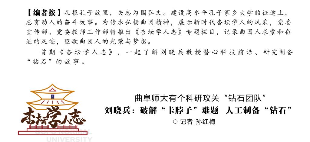刘晓兵教授现担任米兰官方网站前沿交叉科学研究院副院长、济宁市极端条件材料物理重点实验室主任。2006年以来,长期从事高压下的物理与材料科学研究,这个领域的典型代表就是金刚石的人工合成。