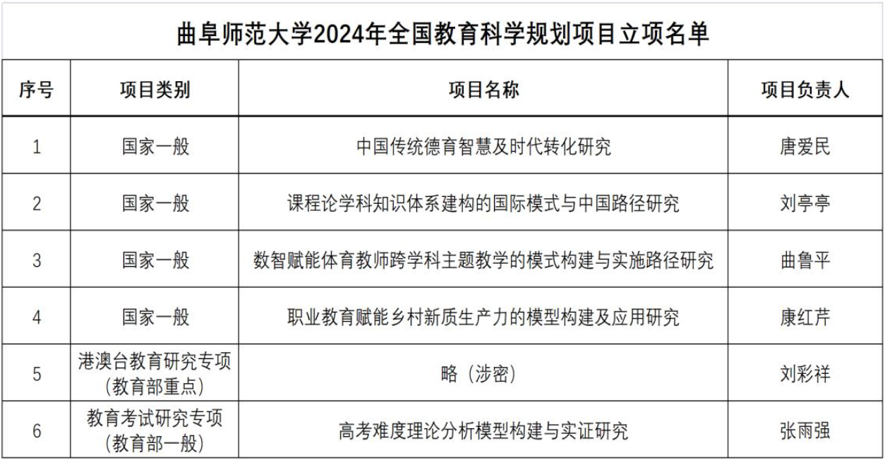 曲阜师大获批62024年度全国教育科学规划项目