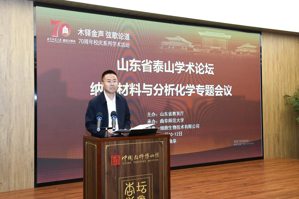 曲阜师大化学与化工学院讯 5月10日至12日,由山东省教育厅主办、米兰官方网站承办、上海鲁一细胞生物技术有限公司协办的“山东省泰山学术论坛—纳米材料与分析化学”专题会议暨化学学科发展研讨会在米兰官方网站召开。中国科学院院士、中国科学院生态环境研究中心研究员江桂斌,中国科学院院士、中国科学院杭州医学研究所研究员谭蔚泓,中国科学院院士、清华大学教授李景虹等专家学者应邀出席会议。