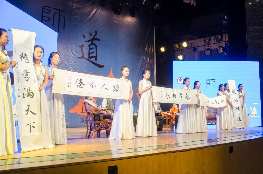讲坛活动中,在校生和毕业生代表还通过主题朗诵、献唱歌曲、送上鲜花、登台致辞、视频通话等形式表达了对老师们的敬意、感恩和祝福。活动最后,在校歌《犁牛之子歌》的优美旋律中,五位“师德标兵”老师分别总结了自己的从教寄语。伴随着现场师生的热烈掌声,本届“曲园师德讲坛”圆满落幕。