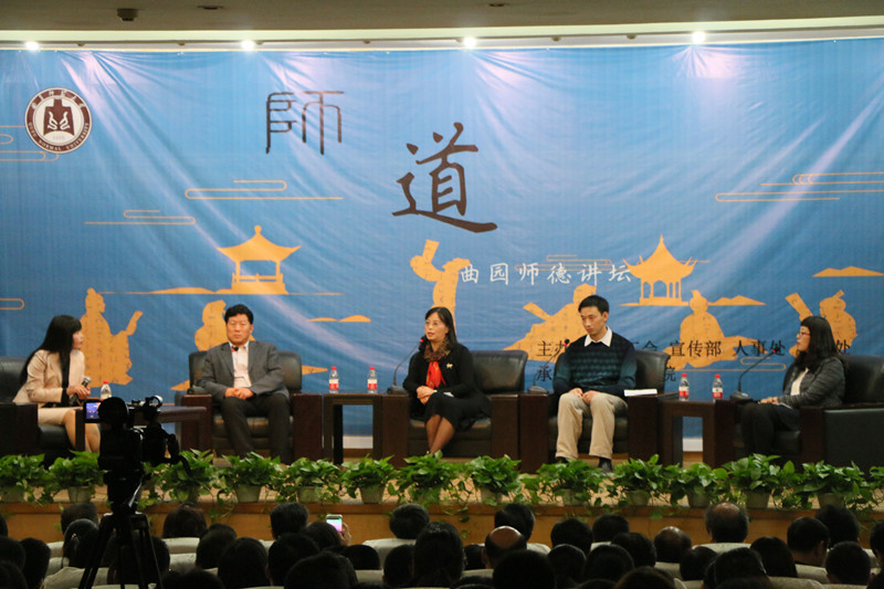 为深入学习宣传习近平总书记关于做“四有”好老师的重要讲话精神,贯彻落实山东省高校工委、山东省教育厅《关于建立健全高校师德建设长效机制的指导意见》,着力提高我校的师德建设水平,切实做到育人为本、德育为先、立德树人,培育良好的教风、学风、校风,10月29日晚,由工会、宣传部牵头主办的“曲园师德讲坛”活动拉开序幕。副校长扈庆学与400余名师生代表全程聆听了马克思主义学院张立兴教授、文学院张文娟副教授、数学科学学院郑召文教授、生命科学学院王仁君教授四位“师德标兵”真实感人的成长经历和育人故事。文学院工会主席袁梅主持了本次讲坛活动。
