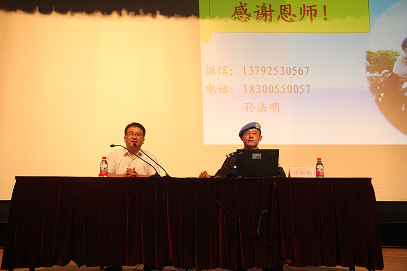 我校优秀校友孙法明回母校作维和事迹报告