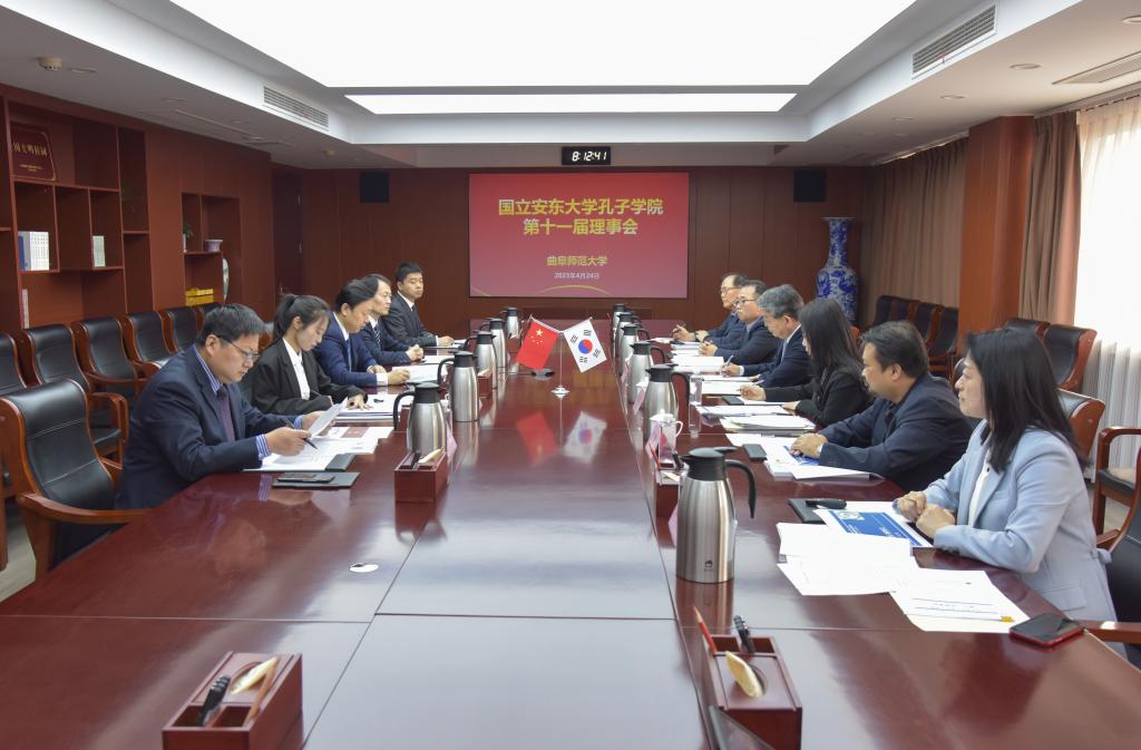 曲阜师大国际交流合作处讯 4月24日,韩国国立安东大学孔子学院第十一届理事会在曲阜师大召开。安东孔院中方理事长、校长张洪海,安东孔院韩方理事长、安东大学校长权纯泰出席会议。张洪海向理事会的召开...