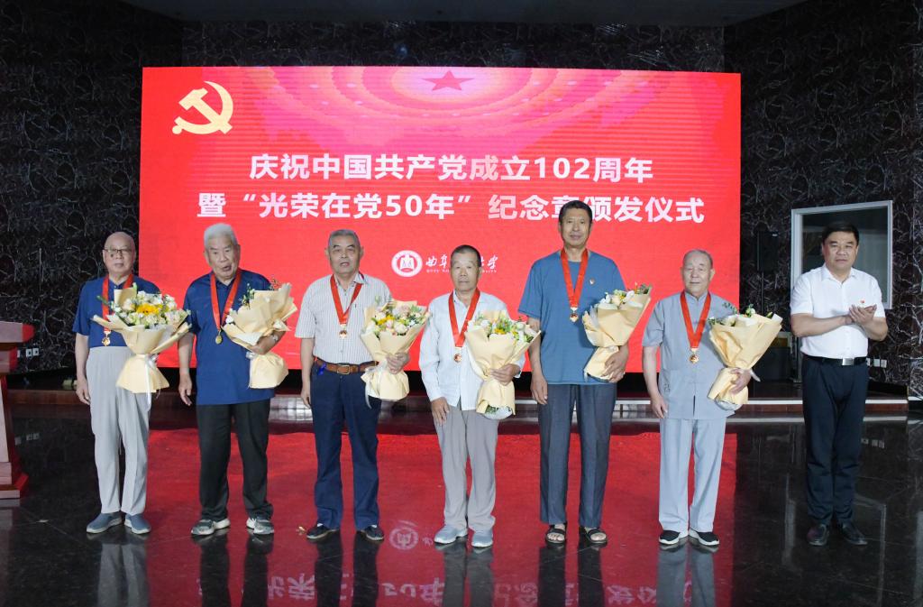 离退休教职工党委讯 在中国共产党成立102周年之际,学校于6月30日下午隆重举行庆祝中国共产党成立102周年暨“光荣在党50年”纪念章颁发仪式。学校党委书记邢光、党委副书记李志红出席活动,党委常委、组...