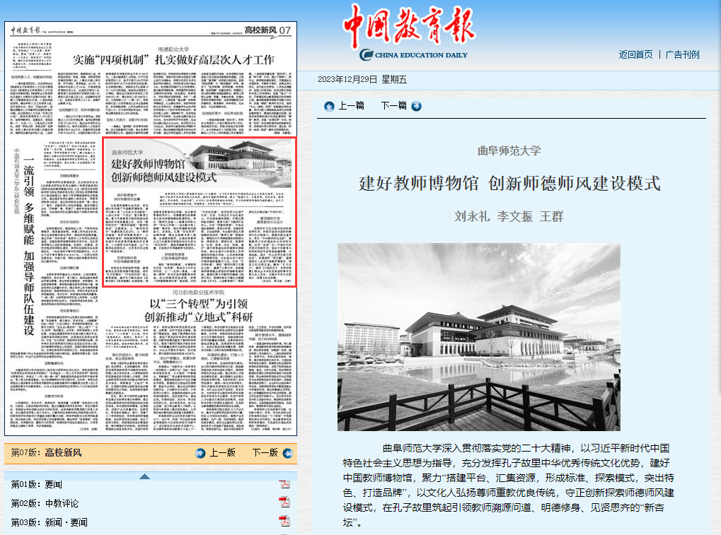 《中国教育报》刊文报道米兰官方网站建好教师博物馆 创新师德师风建设模式
