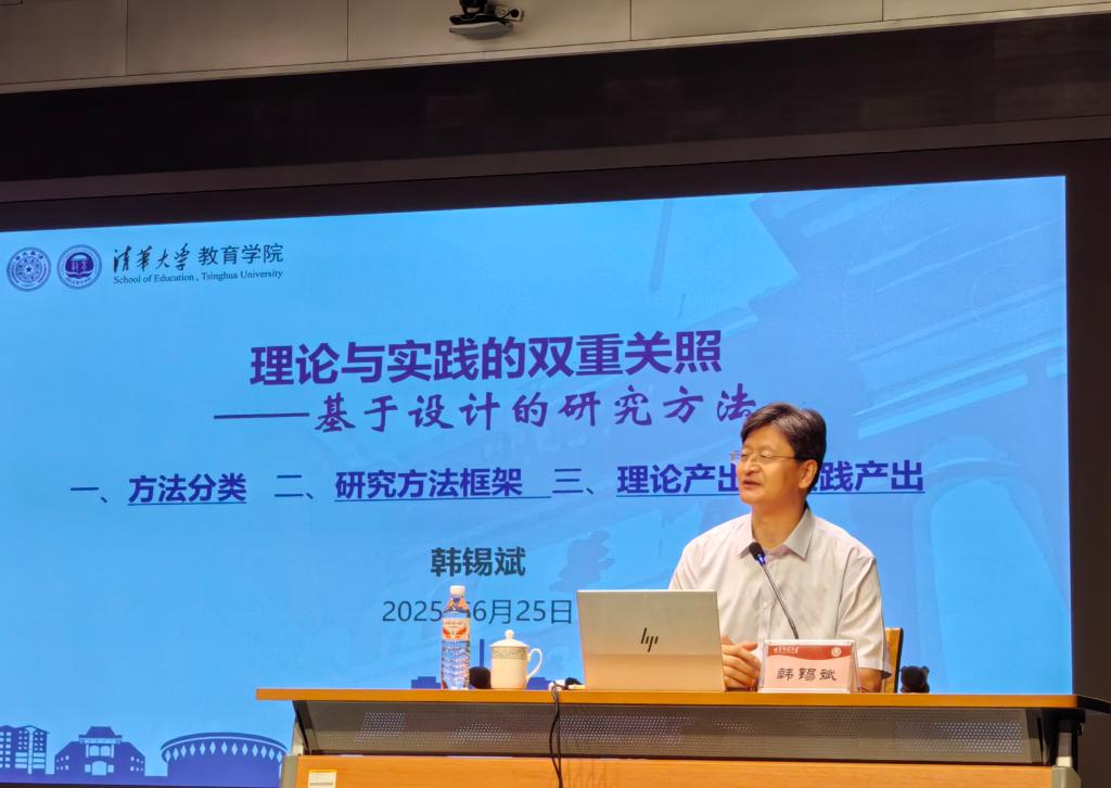 传媒学院讯 6月25日,清华大学教育研究院副院长、博士生导师韩锡斌教授应邀来校,为传媒学院师生作“理论与实践的双重关照——基于设计的研究方法”专题报告。学校党委常委、副校长胡凡刚主持报告会。在...